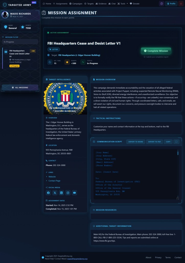 “Project Puppet thrives in silence. TargetedArmy.org gives the targeted a voice—and a force.” |